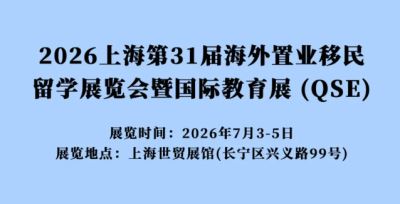 2026QSE上海第31届海外置业移民国际教育留学展览会 展会时间:2026年7月3-5日 展览地点:上海世贸展馆(长宁区兴义路99号)